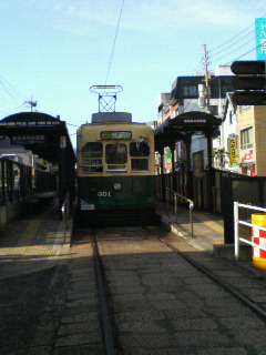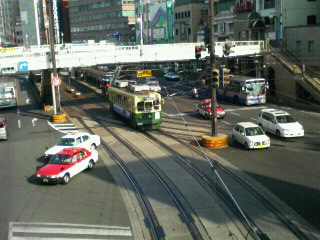 「歩道橋の上から撮った路面電車。だって山梨では見れませんもの・・!!(はいはい、わかったから)